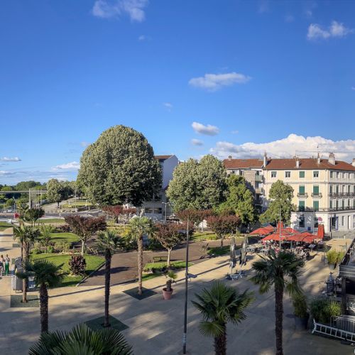 2ème étage, porte d'entrée fer forgé vert donnant sur le cours de Verdun, face au Splendid